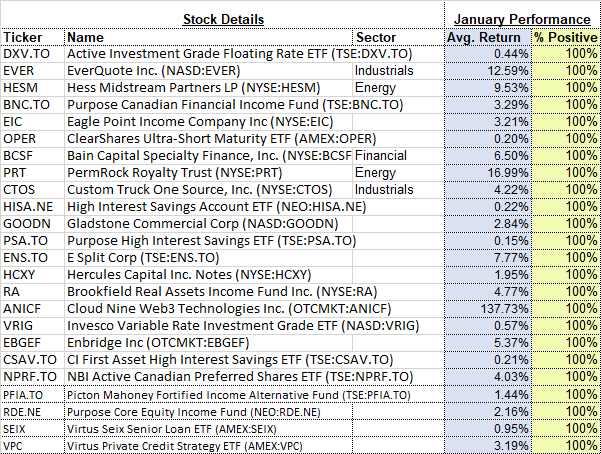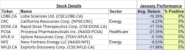 And how about those securities that have never gained in this first month of the year, here they are: