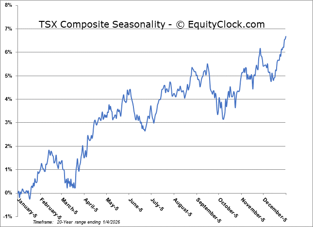Looking ahead, the first month of the year has historically generated strong results, when looking at data from the past five decades.  The S&P 500 Index has averaged a return of 1.2% in this first month of the year, however, the frequency of gains is rather muted at 60%.  Returns have ranged from a loss of 8.6% in January of 2009 to a gain of 13.2% in January of 1987.   We provide more insight in our just released monthly report for January.  Subscribers can look for this report in their inbox or in the archive at https://charts.equityclock.com/