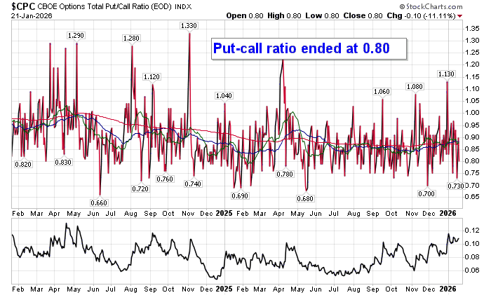 Sentiment on Wednesday, as gauged by the put-call ratio, ended bullish at 0.80.