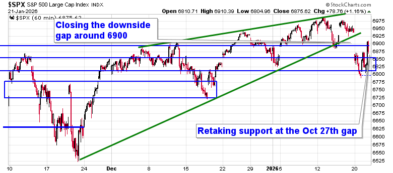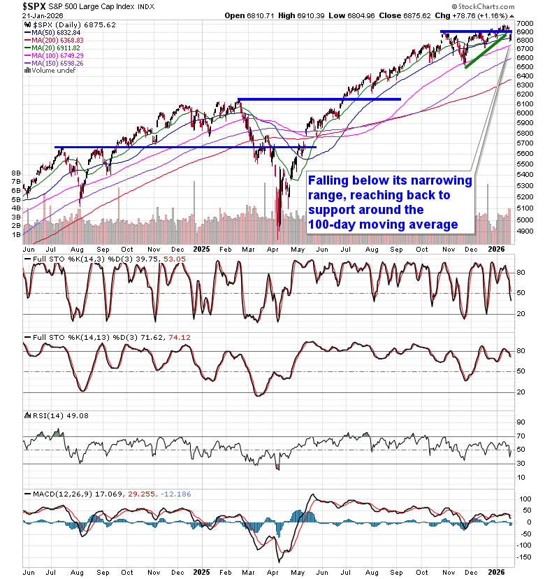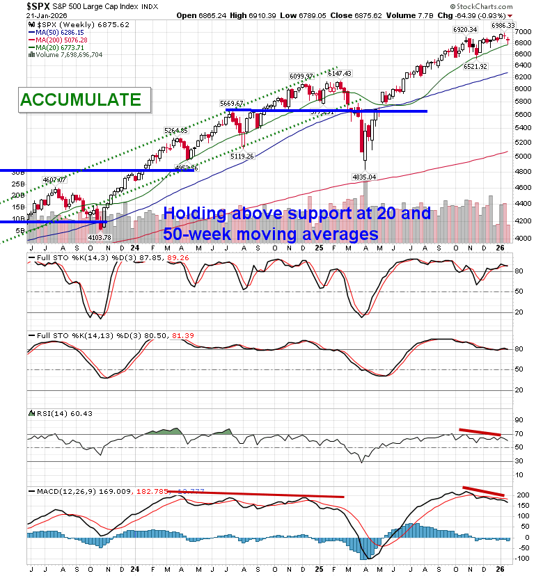 Following the typical playbook for this Trump administration, stocks recovered on Wednesday amidst a de-escalation of tariff rhetoric following an announcement from the US President that a framework for a future deal with respect to Greenland had been achieved. The S&P 500 Index rallied by 1.16%, retaking previous October gap resistance turned support around 6830. The narrowing range that we have been profiling for the past month remains broken and the market has some work to do to chew through the downside gap around 6900 that is applying a level of resistance. As highlighted in our last report, the triggers were present to trim equity exposure, but we had little desire to participate in the panic selling that played out to start the week. Prior to Tuesday’s session, the market was showing greater respect to levels of support than to levels of resistance, but the price action over the past couple of days threatens to flip this stance. A recovery into the aforementioned zone of gap resistance (~6900) through the days/weeks ahead that gets sold into would provide the more opportune time to lighten up on equity exposure, bracing for the kind of volatility that is average around this time of year. In the Seasonal Advantage Portfolio that we oversee at Castlemoore, after enacting trades last week to reduce sensitivity to growth (Technology) segments of the market, there has been no trades that were considered to be required to start the week and we continue to benefit from our pro-cyclical stance. We continue to tailor towards the themes in our chart books to either Accumulate or Avoid that have been capturing the strength and rotation that has filtered into the market from the November 20th lows.