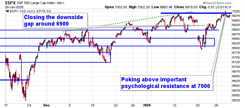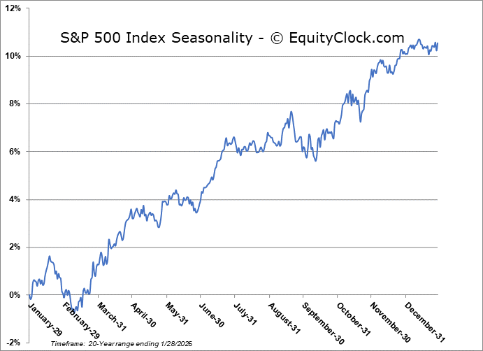 Stocks closed little changed on Wednesday as investors braced for the onslaught of earnings after the closing bell and digested the FOMC rate decision that was released intraday.    The S&P 500 Index was essentially unchanged, down by a single basis point (0.01%) after charting another fresh all-time intraday high during the session above 7000; the benchmark pulled back almost immediately following a test of this important level of psychological resistance.  Previous October gap resistance turned support around 6830 has been keeping us engaged with equity exposure until definitively broken.  We remain on the lookout for a potential shift of the market’s character ahead where levels of resistance hold greater weight than support, but, despite the threats, nothing has been revealed yet; should this become confirmed, looking to trim equity exposure will become prudent, bracing for the kind of volatility that is average around this time of year.  In the Seasonal Advantage Portfolio that we oversee at Castlemoore, there have been no trades that have been considered to be required and we continue to benefit from our pro-cyclical and commodity oriented stance. We continue to tailor towards the themes in our chart books to either Accumulate or Avoid that have been capturing the strength and rotation that has filtered into the market from the November 20th lows.