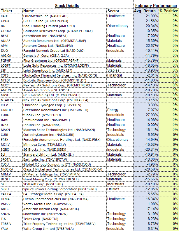 And how about those securities that have never gained in this second month of the year, here they are: