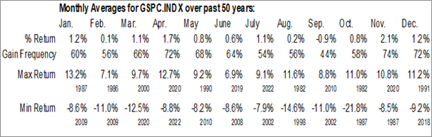 Over the past five decades, the S&P 500 Index has been unchanged, on average, in February with the frequency of positive results equally unimpressive at 54%.