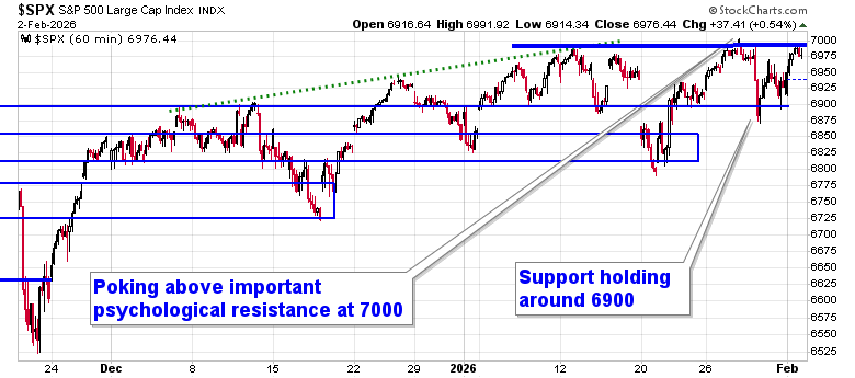 The trading/consolidation range on the S&P 500 Index just below 7000 is providing a good likelihood of an upside breakout.