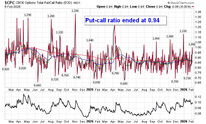 Sentiment on Thursday, as gauged by the put-call ratio, ended slightly bullish at 0.94.