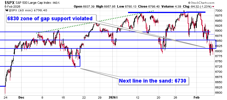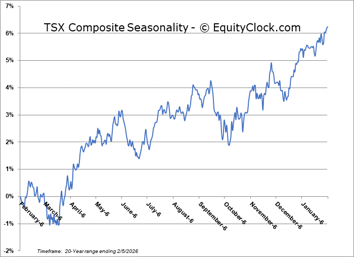 Selling pressures continued into the Thursday session as the cryptocurrency market reached new multi-month lows, even as precious metals (which many had argued as capturing the flows from the digital assets) sold off hard themselves.  The S&P 500 Index closed down by 1.23%, moving definitively below recent support at 6900 and violating the 6830 line in the sand that we had presented as the point where elevated equity exposure should be questioned.   The latter threshold represented the zone of October gap resistance turned support and, while the benchmark spent some time in the span on Thursday, it ultimately failed to attract buying demand.  Below this zone, the point of support to now scrutinize on the downside it 6730, or the mid-December lows.  The appearance of a double-top pattern and the loss of the aforementioned levels of support highlights the shift of character of the market that we had been growing cautious of where levels of support matter less than levels of resistance. Looking to trim equity exposure in this backdrop, until resolved, has become prudent, bracing for the kind of volatility that is average around this time of year.  In the Seasonal Advantage Portfolio that we manage for clients at CastleMoore, we took action on Thursday to align with the risks that are creeping into the market ahead of the average mid-February peak in stocks, but, we have not been enticed, yet, to abandon our pro-cyclical and commodity oriented stance that has been flourishing this year. Themes in our chart books to either Accumulate or Avoid continue to gear towards the trends that are working and intact, but we will be scrutinizing the weekly charts closely to determine if any changes in some of our favourable views are required.