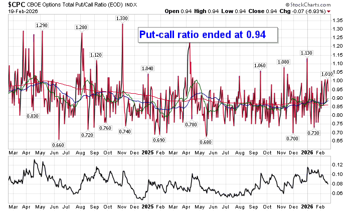 Sentiment on Thursday, as gauged by the put-call ratio, ended slightly bullish at 0.94.