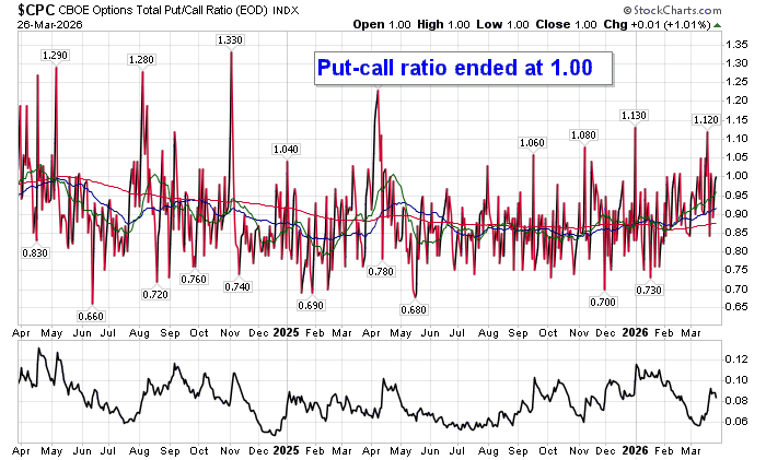 Sentiment on Thursday, as gauged by the put-call ratio, ended neutral at 1.00.